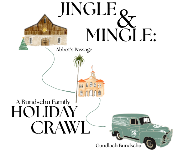 Join us for Jingle & Mingle, a cozy two-winery holiday crawl across Gundlach Bundschu and Abbot’s Passage, where friends, family, and neighbors come together to sip, shop, and share in the spirit of the holidays.